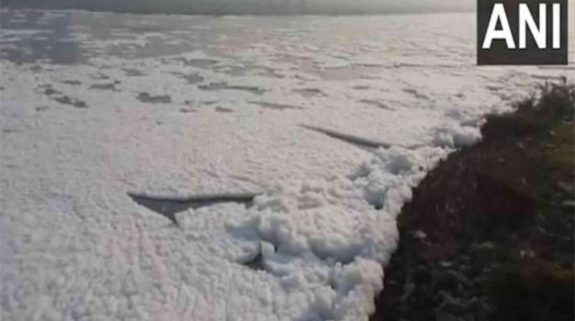 Delhi: Toxic foam surfaces in Yamuna River near Kalindi Kunj amid rising pollution