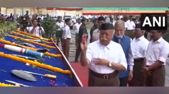 RSS Chief Mohan Bhagwat performs ‘Shastra Pooja’ at annual Vijayadashami programme in Nagpur