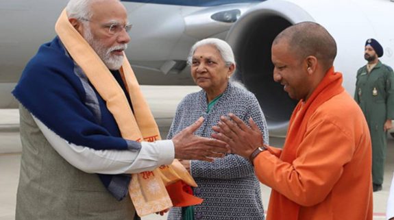 PM Modi arrives in Ayodhya, received by CM Yogi Adityanath